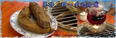 這裡的茶點並不多(請參考店家網頁),最後點了一壺花茶及兩條烤蕃薯來吃。