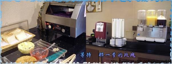 飲料有熱飲機(還有提供茶包)及水、柳橙汁、紅茶三種冷飲。