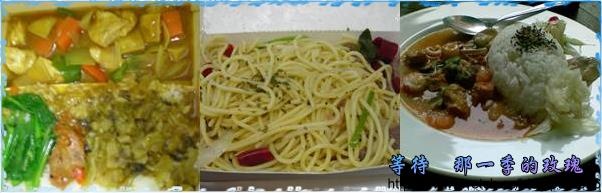 依序為:咖哩雞飯、辣味義大利麵、蟹黃豆腐飯。