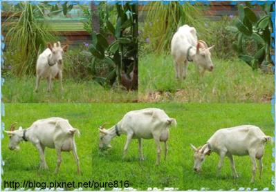 除了植物讓我訝異,園內突然走出一隻旁若無人的缺角羊。