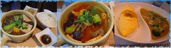 上圖依序是蒙古大漠鍋(280)、泰式酸辣鍋(280)、南瓜鮮蔬歐姆(260)。