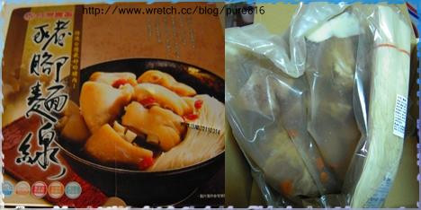 後來看到這一款台畜豬腳麵線,豬腳切成塊狀,可將材料包倒入加熱即可,