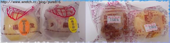 不同於鳳梨酥的包裝,福芋餅與金月亮都是裝在多種產品統一包裝袋中,再貼上產品名稱的貼紙。